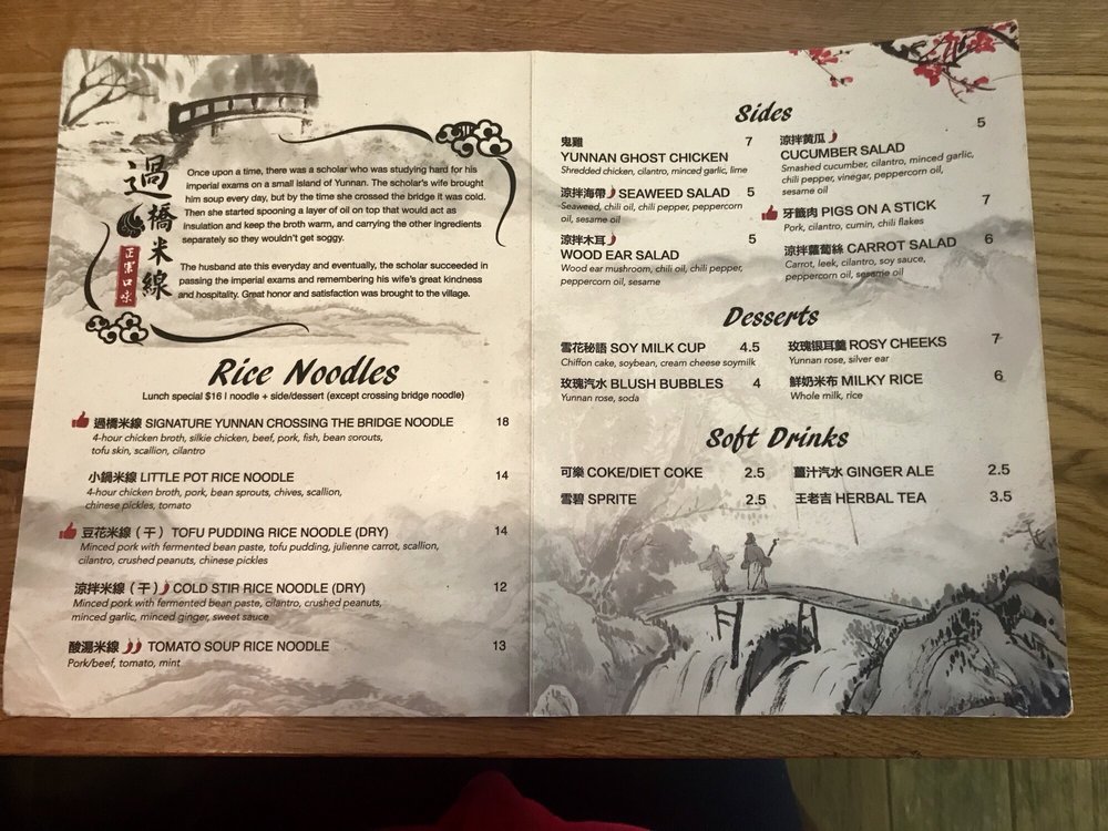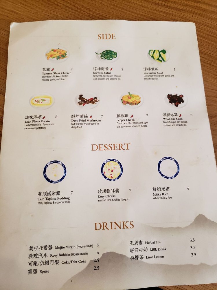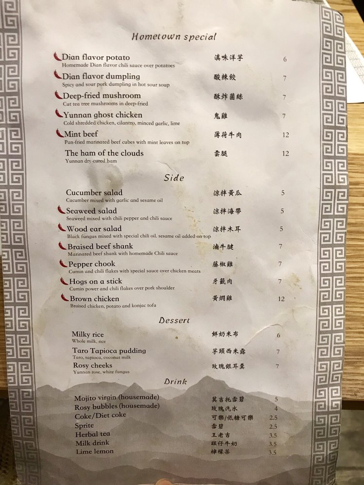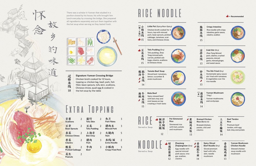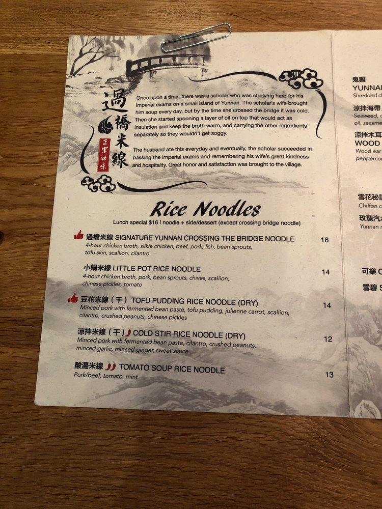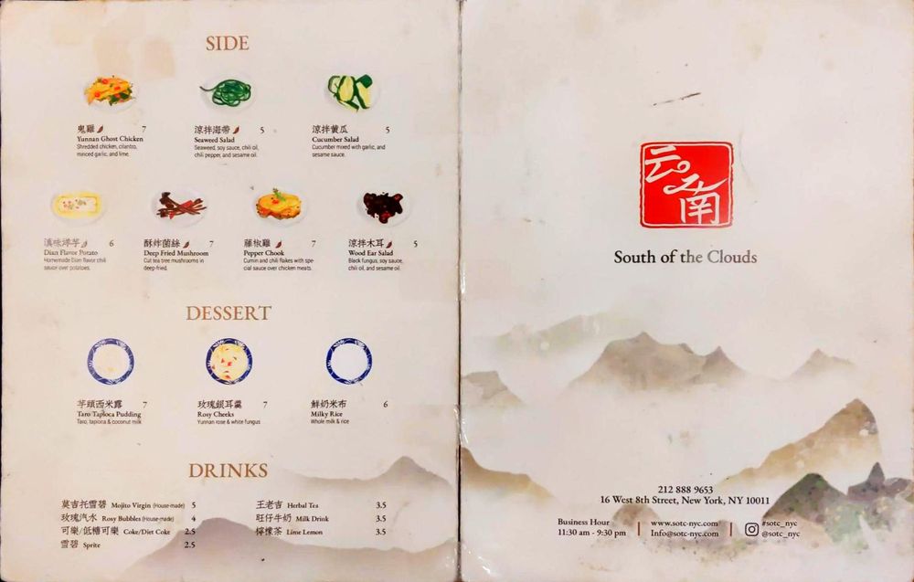 South Of The Clouds, located in New York City, offers a variety of Chinese noodle dishes and desserts. With options for delivery, takeout, and reservations, the restaurant provides a classy and casual dining experience with moderate noise levels. The menu boasts a selection of rice noodles and meat dishes, such as the Signature Yunnan Crossing Bridge Chicken broth and Sliced Beef Quail Egg. Customers praise the flavorful dishes, especially the Yunnan Crossing Bridge Rice Noodles and Dai-style stir-fried beef. The cozy atmosphere and thoughtful attention to detail make South Of The Clouds a hidden gem for spice lovers and noodle enthusiasts alike. Don't miss out on their handmade desserts like Handmade Coconut Jelly and Coconut Juice with tapioca. Overall, South Of The Clouds offers a satisfying and memorable dining experience for those craving authentic Yunnan cuisine.