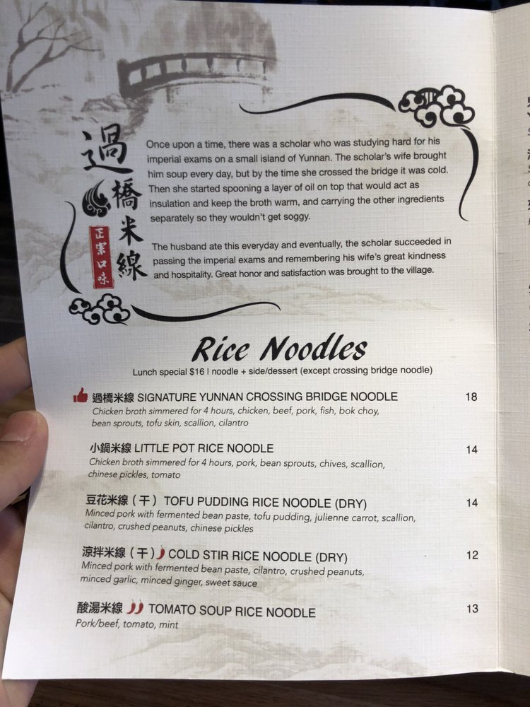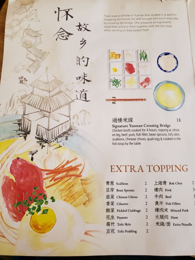 Served with homemade meat sauce, tofu pudding, carrots, pickled cabbage and Chinese chives over the rice noodles.
